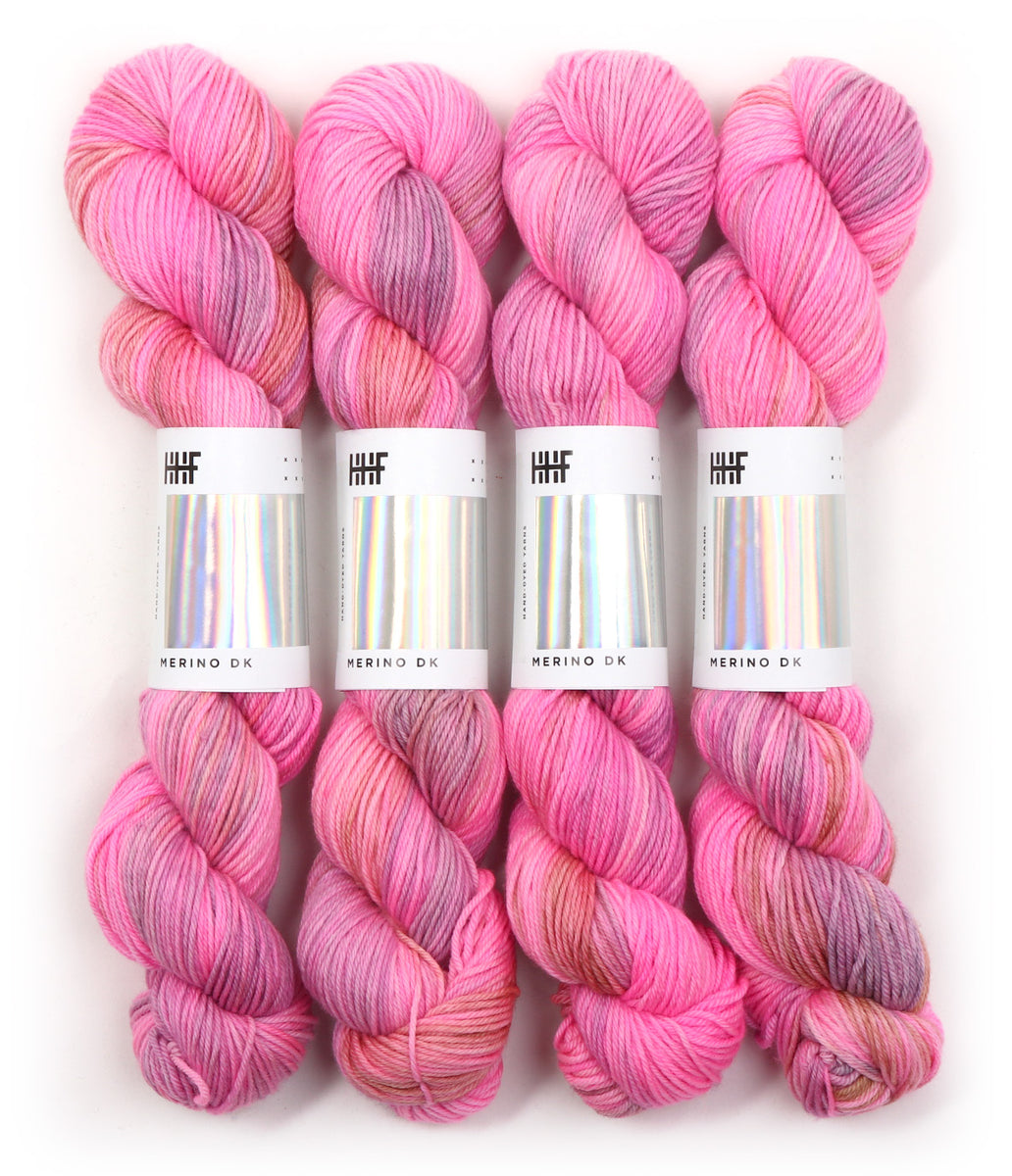 100g hand dyed Merino DK weight yarn. Approx. 200m per 100g. Smooth, soft, non-scratchy yarn with a tighter twist and round profile. Great all purpose workhorse yarn, next to the skin soft. Wonderful stitch definition and great loft.