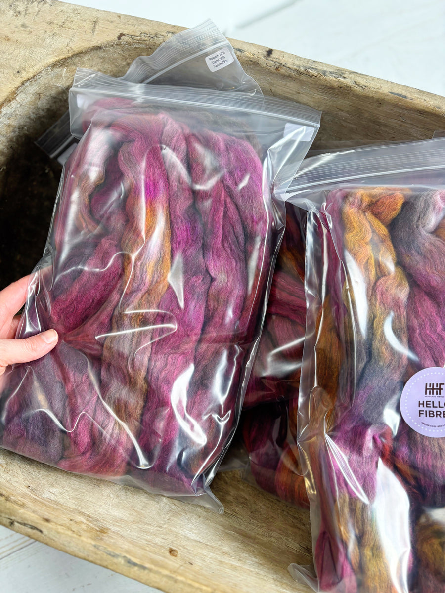 125g of 50% Polwarth wool, 30% Llama, 20% Silk top.