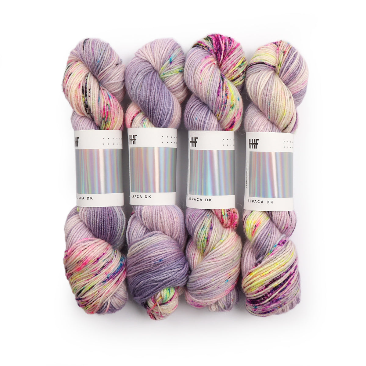 With a slight halo and extra warmth from Alpaca this DK weight superwash yarn is just dreamy! It is loftier and less dense than our Merino DK while maintaining the same bright and crisp colours. Wonderful for anything from sweaters to accessories!