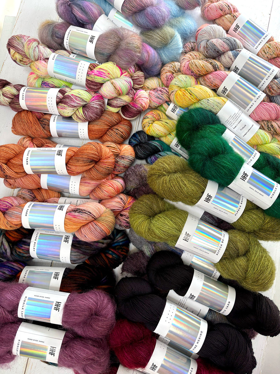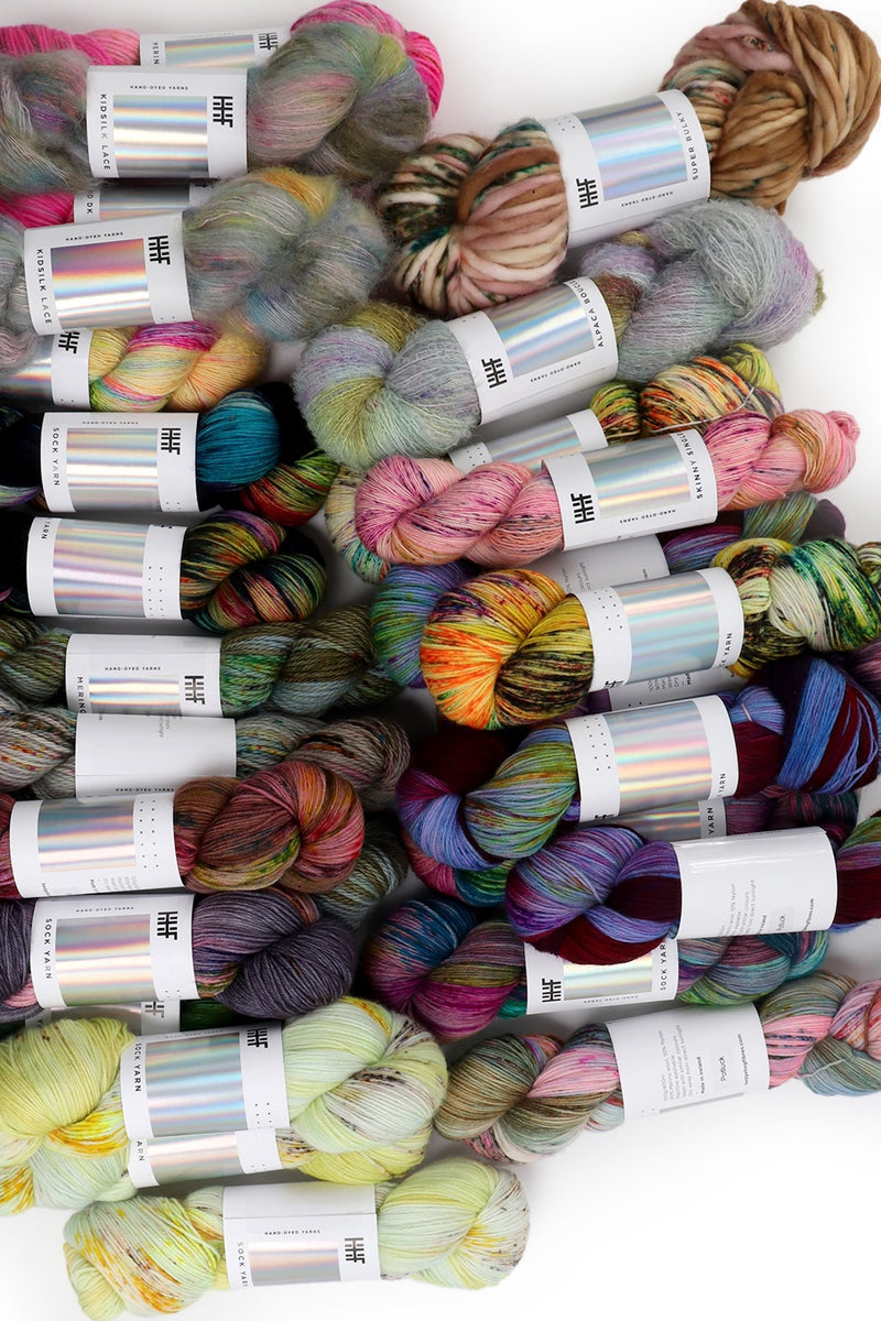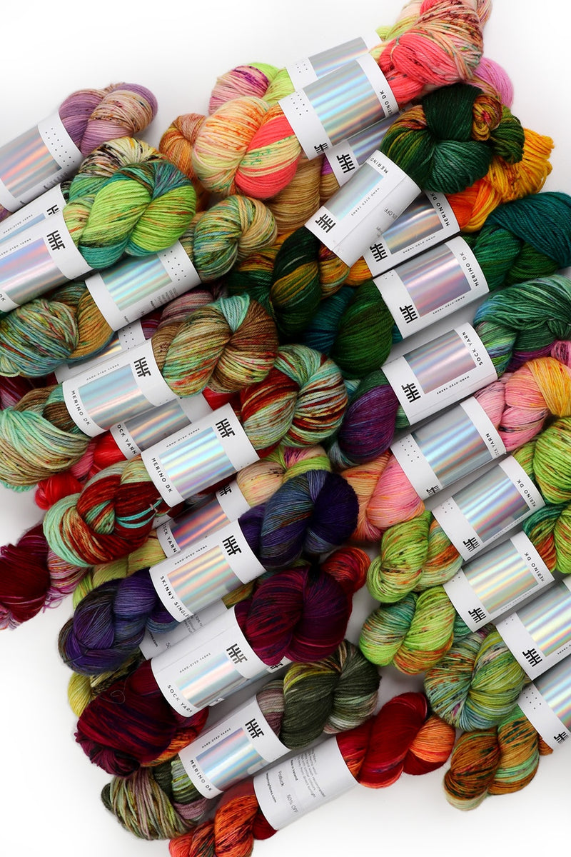 All skeins in these bundles are seconds. There is a fair bit of semi-solids, lot of them are 'close, but not quite' our regular colourways, some may have spots. There are speckled and multis as well. All skeins are seconds in colour, not seconds in quality. None of the skeins are tangled. Please see the pictures of the current batch of Potluck colours, you will receive random pick of three skeins from the batch pictured.