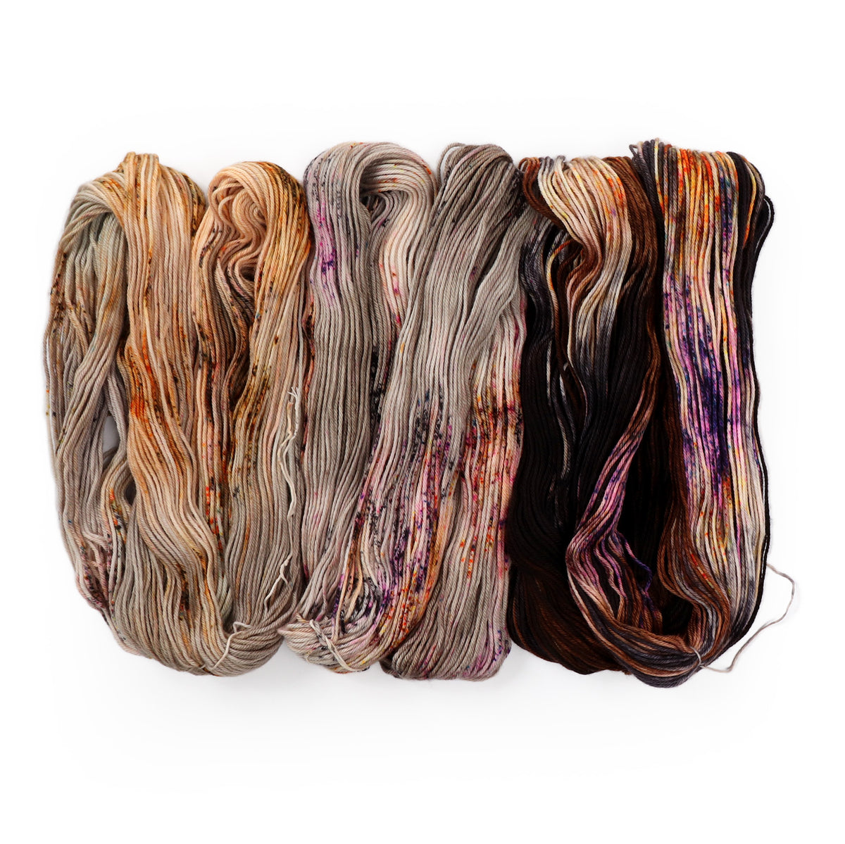 Invoke the spirit of the season with this hauntingly beautiful trio of hand-dyed yarns. Each skein tells a story from the witching hour — where moonlight meets shadow and magic hums in every stitch. Only available for the month of October.