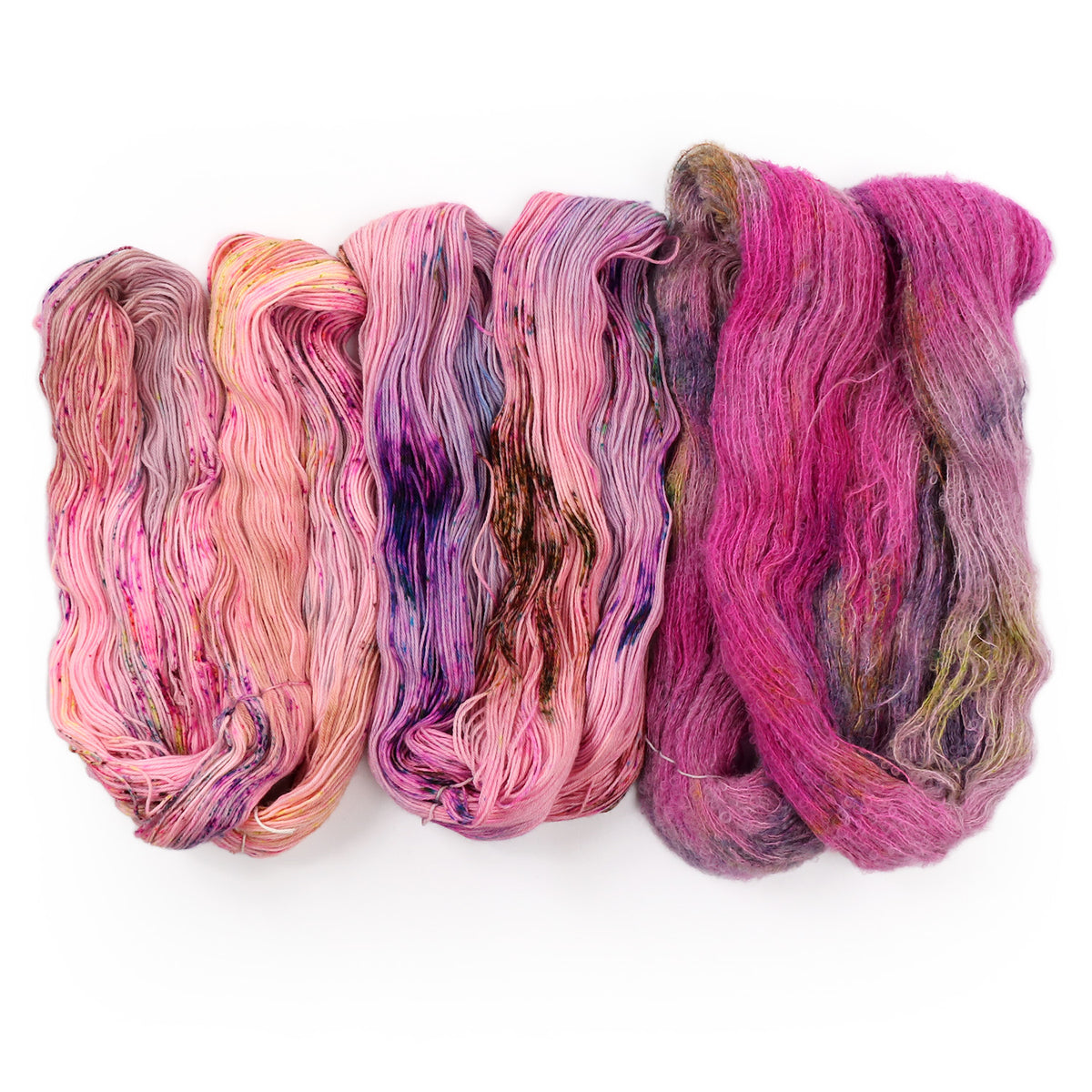 One of a kind colour texture sets hand-picked by Beata. These fun sets are made of all Potluck™ skeins, which are one of a kind. Perfect for Simple Syrup pattern (free).